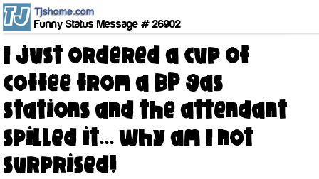 X I just ordered a cup of coffee from a BP gas stations and the attendant spilled it... why am I not surprised!