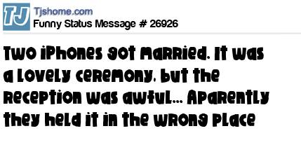 - # 25688 Two antennas met on a roof, fell in love and got married. The ceremony wasn't much, but the reception was excellent. Thank you and good night, drive safely, I'll be here all week.