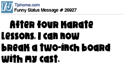 - # 186311 After four karate lessons, I can now break a two-inch board with my cast
