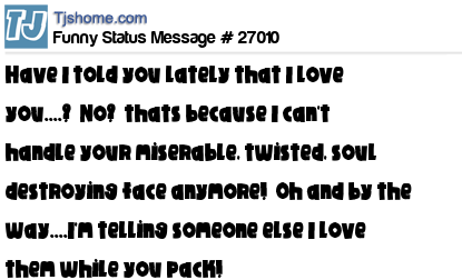 X is have I told you lately that I love you....? No? thats because I can't handle your miserable, twisted, soul destroying face anymore! Oh and by the way....I'm telling someone else I love them while you pack!
