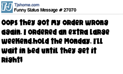 X Oops they got my order wrong again. I ordered an extra large weekend,hold the Monday. I'll wait in bed until they get it right!