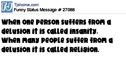 - # 17296 When one person suffers from delusion, it is called insanity.When many people suffer from delusion, it is called religion....