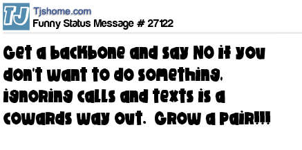 X is Get a backbone and say NO if you don't want to do something, ignoring calls and texts is a cowards way out. Grow a pair!!!