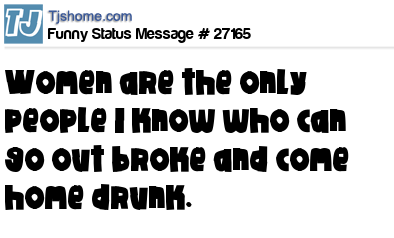 - # 165649 Women are the only people who can go out to bar broke but come home drunk.