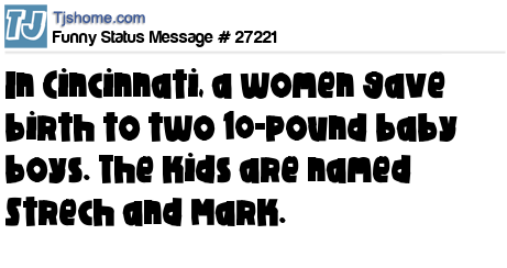 X says In Cincinnati, a women gave birth to two 10-pound baby boys. The kids are named Strech and Mark.