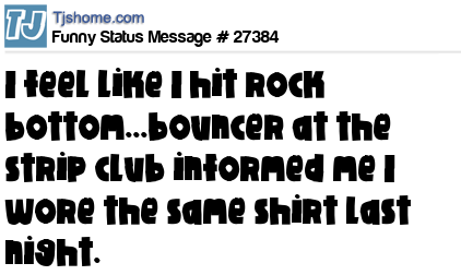 X says I feel like I hit rock bottom...bouncer at the strip club informed me I wore the same shirt last night.