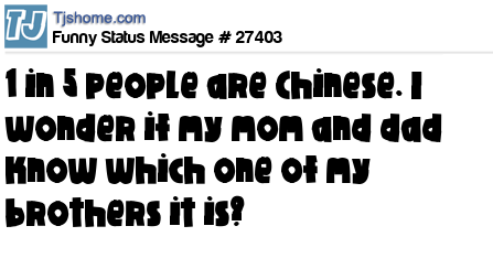 X  1 in 5 people are Chinese. I wonder if my mom and dad know which one of my brothers it is?