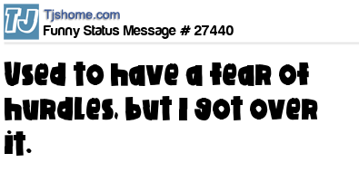 - # 129946 I used to be afraid of hurdles, but I am over it now.