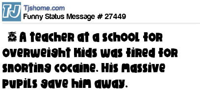 - # 27203 ~ A teacher at a school for overweight kids was fired for sniffing cocaine. His massive pupils gave him away.