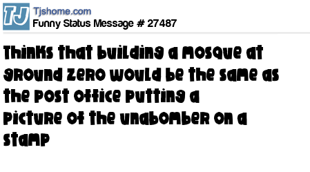 X  thinks that building a mosque at ground zero would be the same as the post office putting a picture of the unabomber on a stamp