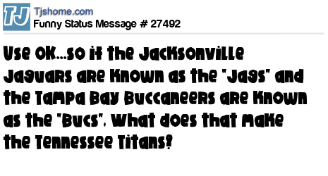 X says Use OK...so if the Jacksonville Jaguars are known as the "Jags" and the Tampa Bay Buccaneers are known as the "Bucs", What does that make the Tennessee Titans?