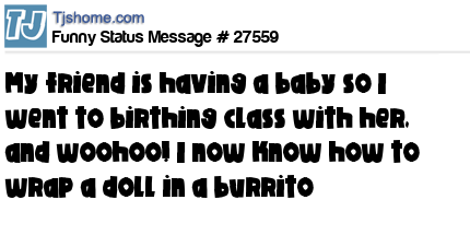 X My friend is having a baby so I went to birthing class with her, and woohoo! I now know how to wrap a doll in a burrito