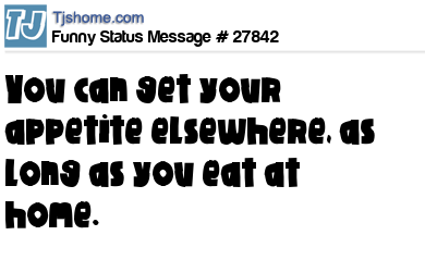 - # 89621 Yesterday my wife caught me checking out our hot new neighbor and all she had to say to me was, “It doesn't matter where you get your appetite, as long as you eat at home".