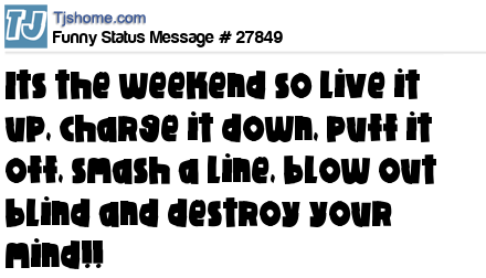 X  its the weekend so live it up, charge it down, puff it off, smash a line, blow out blind and destroy your mind!!