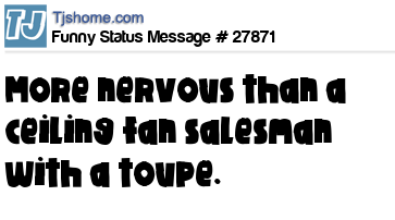 - # 98474 My ceiling fan has three settings: -- very slow -- Medium ,, and --I'm about to fly off the ceiling and kill you in a freak ceiling fan accident