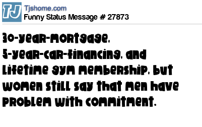- # 21419 Men... They have 30 year mortgages, 5 year car leases, 2 year cell phone contracts and a lifetime gym membership and then they say they're afraid of commitment!