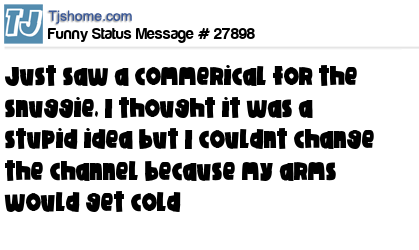 - # 143349 I can't change the channel when those stupid snuggie commercials come on because I'm under a blanket and I don't want my arms to get cold.
