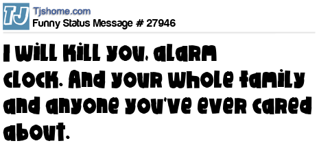 X I will kill you, alarm clock. And your whole family and anyone you've ever cared about.
