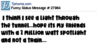 X is I think I see a light through the tunnel...hope its my friends with a 2 million watt spotlight and not a train....