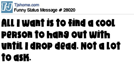 X All I want is to find a cool person to hang out with until I drop dead. Not a lot to ask.