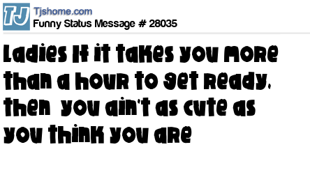 - # 121333 Ladies... If it takes you more than a hour to get ready, you aren't as cute as you think you are.