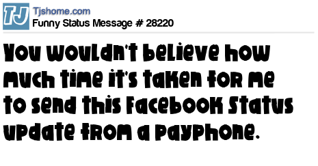 X You wouldn't believe how much time it's taken for me to send this Facebook Status update from a payphone.