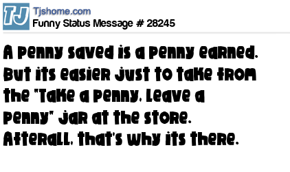 - # 28239 A penny saved is a penny you didn't put in the "Take a penny, leave a penny" jar, you cheap ba$tard!