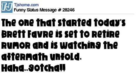 X is the one that started today's Brett Favre is set to retire rumor and is watching the aftermath unfold. Haha..gotcha!!