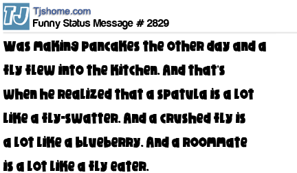 X was making pancakes the other day and a fly flew into the kitchen. And that's when he realized that a spatula is a lot like a fly-swatter. And a crushed fly is a lot like a blueberry. And a roommate is a lot like a fly eater.