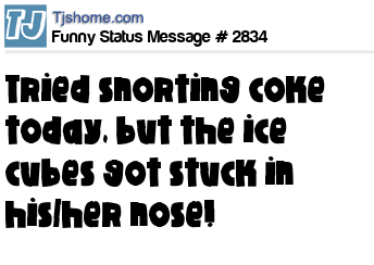 - # 9403 I tried sniffing Coke once, but the ice cubes got stuck in my nose.