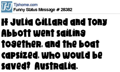 X says if Julia Gillard and Tony Abbott went sailing together, and the boat capsized, who would be saved? Australia.
