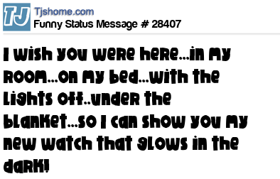 - # 27396 Wish you were here w/me n my room, on my bed, lights off, under my sheets. So that I can show you my new watch dat glows n da dark!