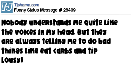 X says nobody understands me quite like the voices in my head. But they are always telling me to do bad things like eat carbs and tip lousy!