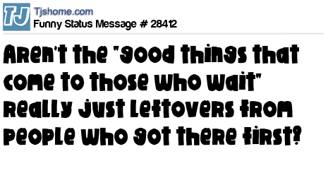 X Aren't the "good things that come to those who wait" really just leftovers from people who got there first?