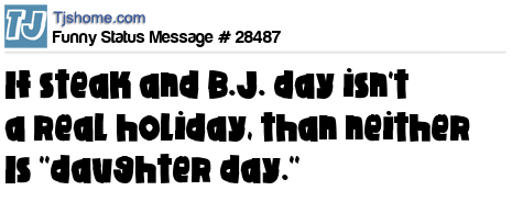 X says If steak and B.J. day isn't a real holiday, than neither Is ''daughter day.''