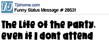 - # 67900 Went to a Real life party and I knew everybody there. Went to a Facebook party and saw most of my friends. Went to a Twitter party and didn't know anybody there. Went to a Myspace party and I was the only one there.
