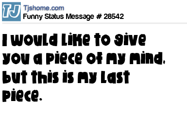 - # 67544 Before you give someone a piece of your mind, make sure you can get by with what is left.