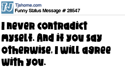 X I never contradict myself. And if you say otherwise, I will agree with you.