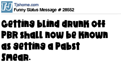 X Getting blind drunk off PBR shall now be known as getting a Pabst Smear.
