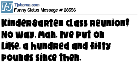 X Kindergarten class reunion? No way, man. Ive put on like, a hundred and fifty pounds since then.