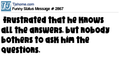 X is frustrated that he knows all the answers, but nobody bothers to ask him the questions.