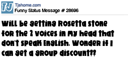 X is Will be getting Rosetta stone for the 2 voices in my head that don't speak English. Wonder if I can get a group discount??