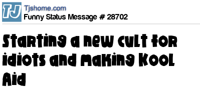 - # 48271 I'm starting a cult, calling it Sheenism, you pretty much just get drunk and do whatever the hell you want, but you get a free What Would Charlie do Bracelet.
