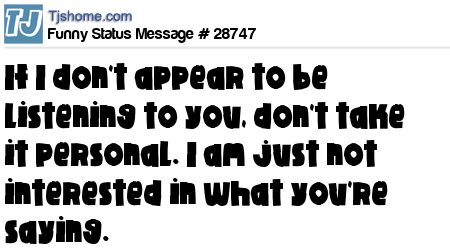 X says If I don't appear to be listening to you, don't take it personal. I am just not interested in what you're saying.