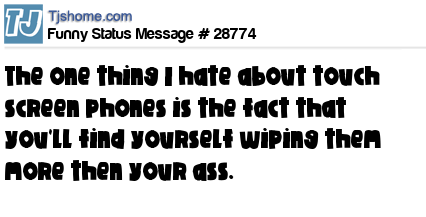 X The one thing I hate about touch screen phones is the fact that you'll find yourself wiping them more then your ass.