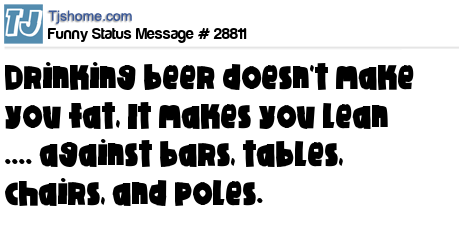 X Drinking beer doesn't make you fat, It makes you lean .... against bars, tables, chairs, and poles.