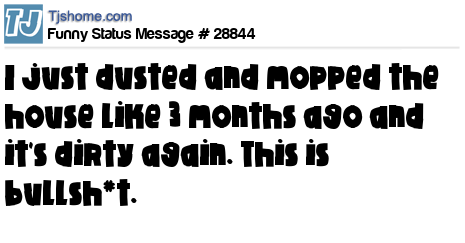 X I just dusted and mopped the house like 3 months ago and it's dirty again. This is bullsh*t.