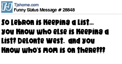 X  So Lebron is keeping a list... you know who else is keeping a list? Delonte West.  and you know who's mom is on there???
