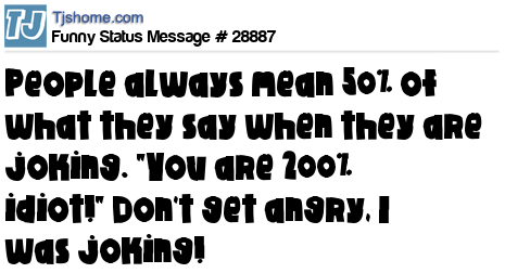 X says People always mean 50% of what they say when they are joking. "You are 200% idiot!" Don't get angry, I was joking!