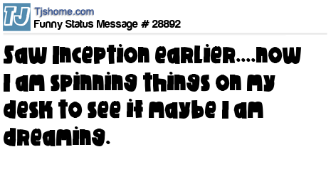 X saw Inception earlier....now I am spinning things on my desk to see if maybe I am dreaming.
